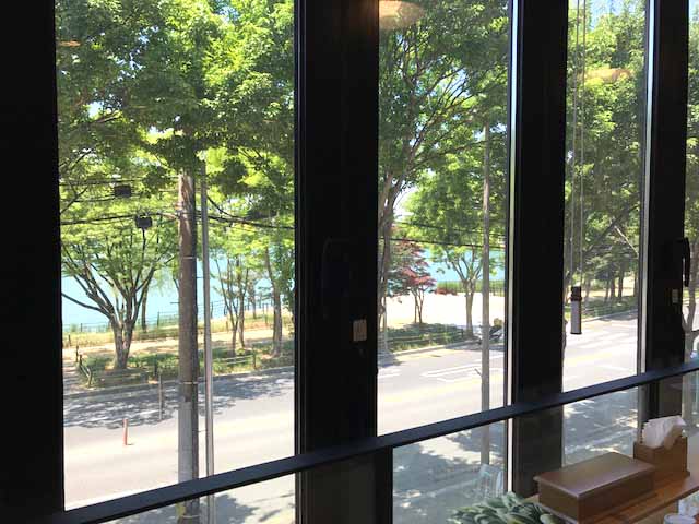 ☆寿城池の通り沿いにあるので、店内からの景色もなかなか。