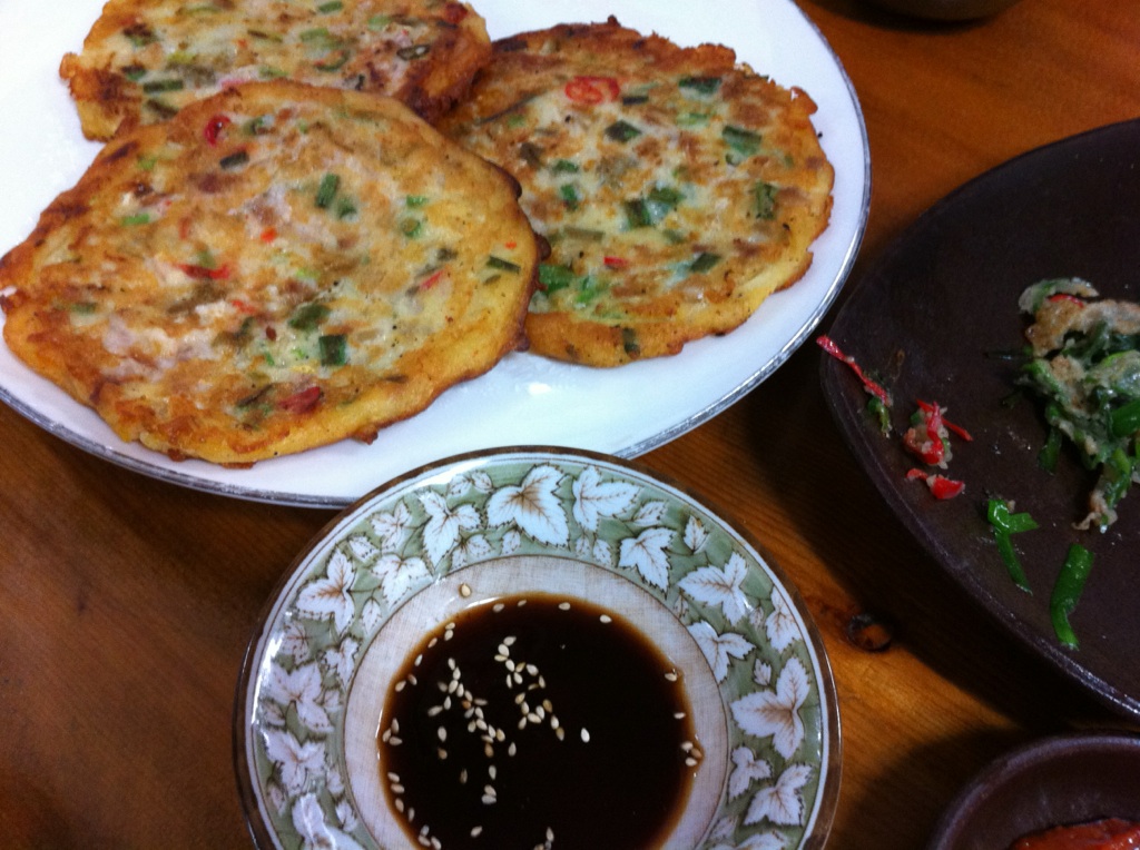 音楽を聴いて、マッコリにチヂミやスープなどが出て