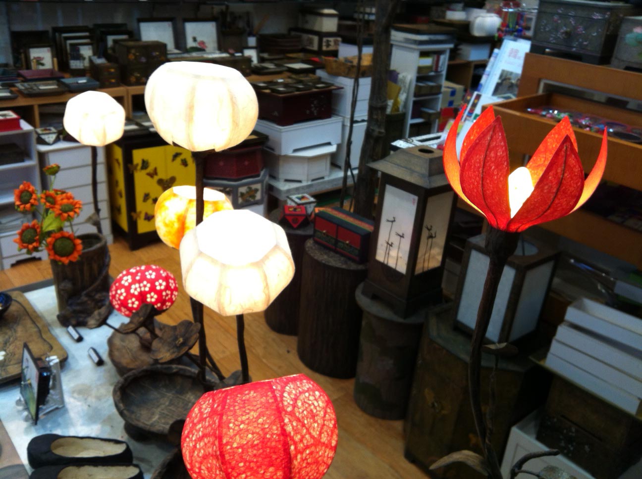 さまざまな韓紙工芸品がぎっしりと並んでいます。