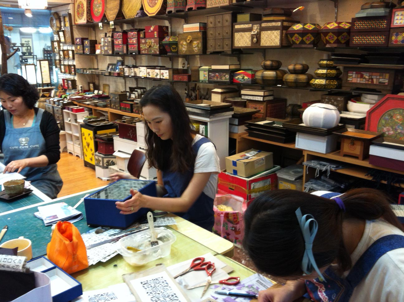 ここでは希望者に韓紙工芸品の作り方を教えています。
